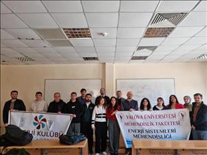 Yalova Üniversitesi Enerji Kulübü ve Vizyoner Makineciler Kulübü, Mac Soğutma'dan Batuhan Üğüdür’ün konuşmacı olarak katıldığı, "Soğutma Makinelerinin Çalışma Prensibi" konulu bir seminer düzenledi. Seminer, yaklaşık bir saat süresince öğrencilerle interaktif bir şekilde gerçekleşti ve toplamda 37 öğrenci katılım gösterdi.